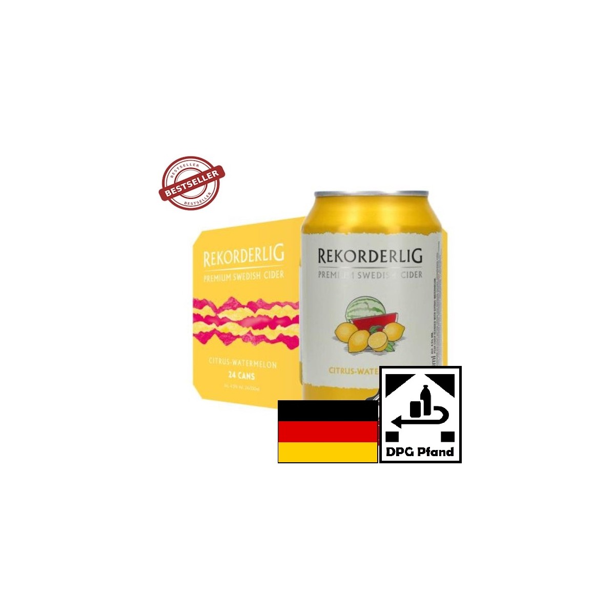 Rekorderlig Watermelon-Citrus 4.5% 24x33cl is a refreshing and fruity Swedish cider that blends the sweet juiciness of watermelon with a zesty citrus twist. This light and vibrant drink is perfect for summer days, social occasions, or simply cooling off with something flavorful and fun.