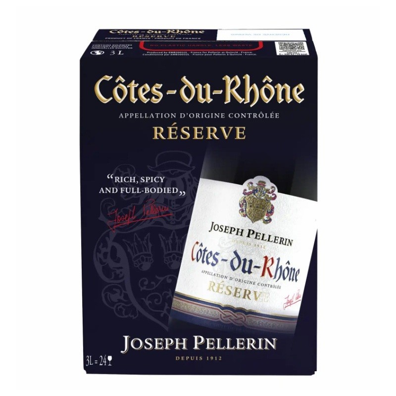 Côtes-du-Rhône Réserve Joseph Pellerin 14% 3L BiB on klassinen ranskalainen punaviini Rhône-laaksosta, jossa yhdistyvät perinteinen tyyli, rakenne ja syvyys. Runsas hedelmäisyys ja hienoinen mausteisuus tekevät viinistä erinomaisen ruokaviinin.