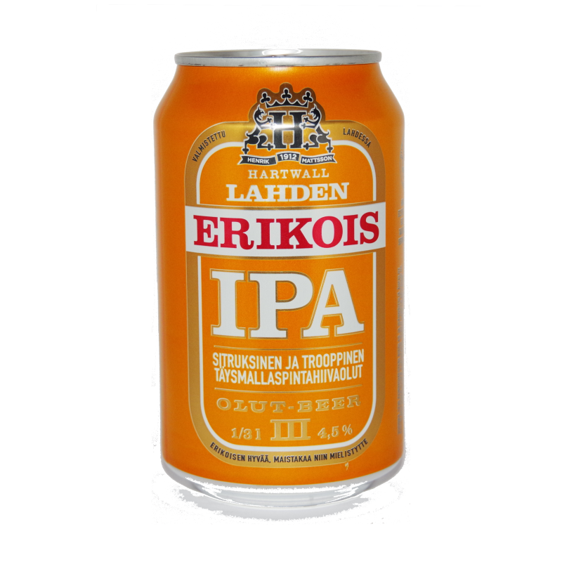 Hartwall Lahden Erikois IPA 4,5% 24×33cl on suomalainen IPA, tasapainoinen, humalainen ja raikas. Valmistettu huolella valituista humalista, ja siinä on sitruksen, trooppisten hedelmien ja kevyiden mäntyvivahteiden aromeja, yhdistettynä pehmeään maltaiseen pohjaan. Kevyt ja helposti juotava IPA, sopii arkeen, grilliruoan tai täyteläisten ruokien kanssa.