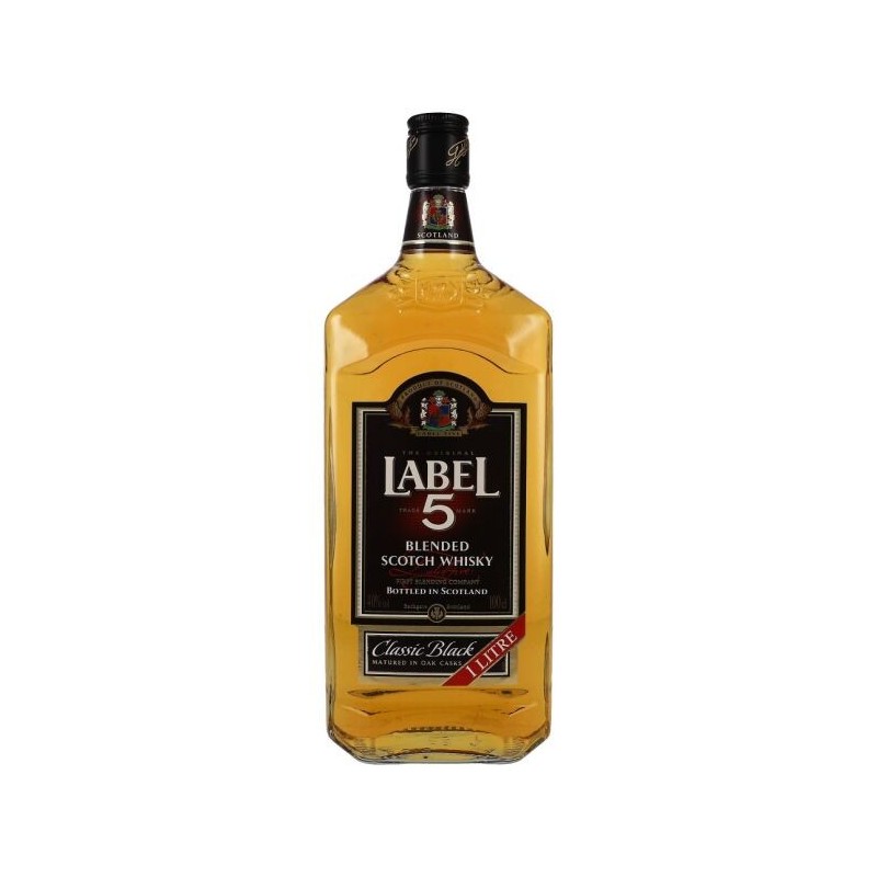 Label 5 Whisky 40% 100cl on pehmeä ja helposti lähestyttävä skotlantilainen sekoiteviski, valmistettu tasapainoisesta mallas- ja viljaviskien yhdistelmästä. Tarjoaa mietoja vaniljan, tammen ja mallaksen sävyjä, sopien erinomaisesti nautittavaksi sellaisenaan tai cocktaileissa.