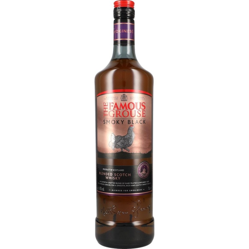 The Famous Grouse Smoky Black 40% 100cl on voimakas ja savuinen sekoiteviski Skotlannista, joka yhdistää perinteisen Famous Grouse -pehmeyden erottuvaan turpeiseen luonteeseen. Tarjoaa täyteläisiä savun, mallaksen ja kevyen tammen mausteisuuden sävyjä. Sopii nautittavaksi sellaisenaan tai pienellä vesilisällä.