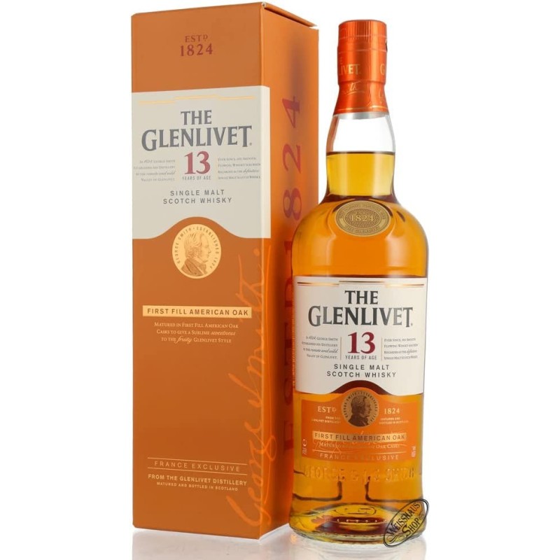The Glenlivet 13YO First Fill American Oak 40% 70cl on pehmeä ja elegantti single malt -viski Speysidestä, kypsytetty ensimmäisessä käytössä olleissa amerikkalaisissa tammitynnyreissä. Tämä antaa sille täyteläisen vaniljaisen makeuden sekä hunajan, sitruksen ja hienovaraisen tammimausteisuuden sävyjä. Sopii nautittavaksi sellaisenaan tai muutamalla tipalla vettä makujen avaamiseksi.